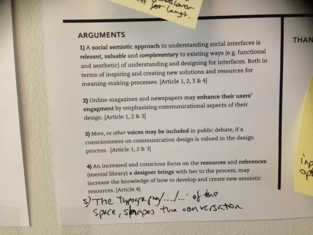 I want us to look at the design of digital rooms in the same way as physical rooms: some are designed for fun, some for debate, some for board meetings, and some even for secrets. These rooms are designed with different colours, chairs, curtains, arrangement, tables and materials. Some are limited to only two people, some are open for every one who wants to come in. Can we look at digital rooms and their typography, colours, layout, navigation and input options (meaning the open fields where you can write, scales, polls, or the predefined choices of SnapChat filters and Facebook Reactions) in the same way? How could a typeface or graphics communicate that it is a fun and cosy place, like the coloured bean bags? What kind of values could we picture that the room could symbolize? When you enter an old, beautiful church, you may get a sense of awe, or feeling small. What do we want you to feel when you enter a debating space online?