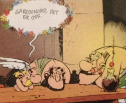 3) the evil facial expressions of Asterix and Obelix suggesting irony and malice